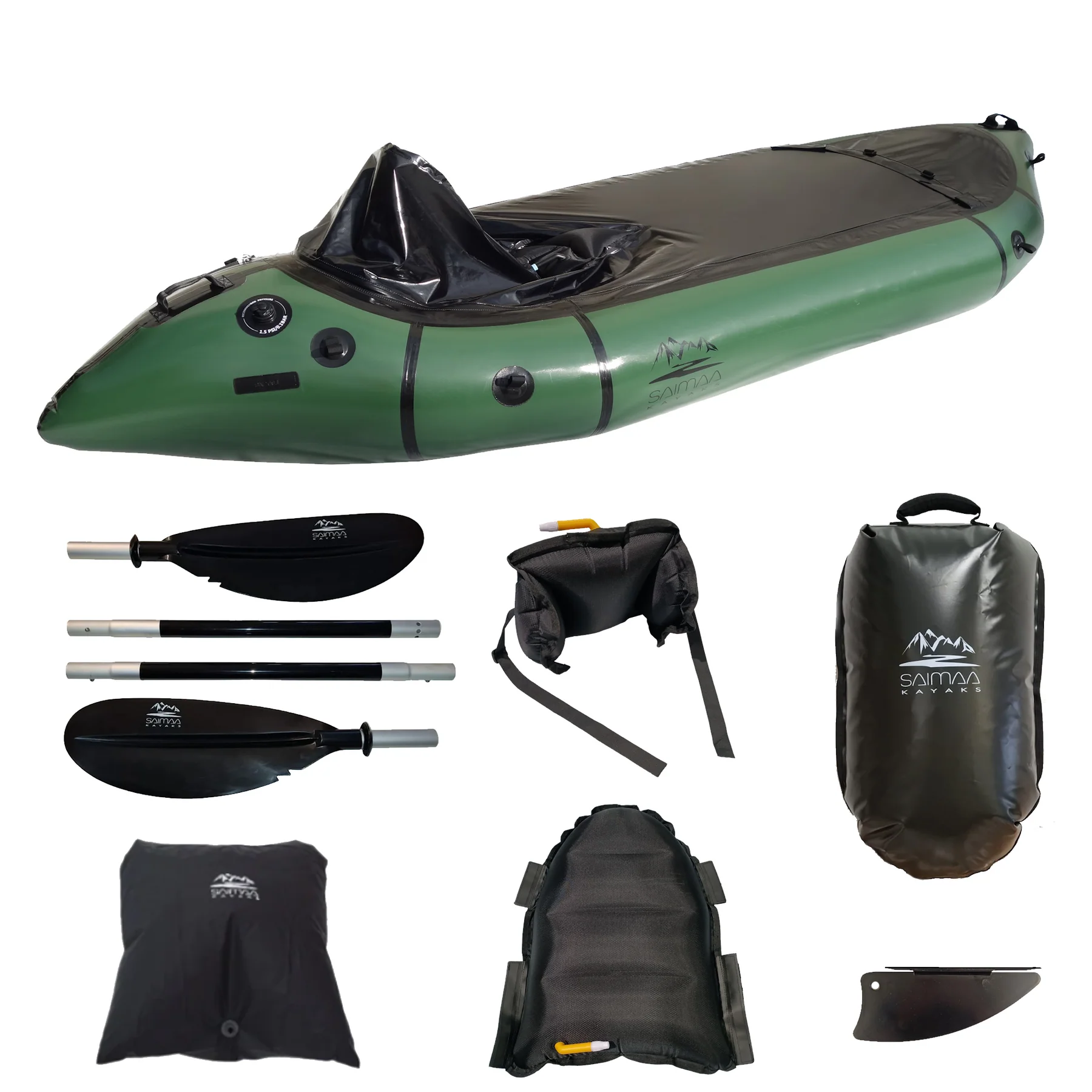 Paketti on todellinen ready-to-adventure johon kuuluu kaikki, myös kolme vesitiivistä säkkiä: mela, ilmalla täytettävä penkki sekä selkänoja, evä, irrotettava kansipeite, täyttöpussi, vesitiiviit keulasäkki 30L, drybag 50L, sekä kantosäkki ja korjausmateriaalit. 30 litran vetoketjulliseen vesitiiviiseen keulasäkkiin (bow bag) saat kätevästi usein tarvittavat tavarat helposti saataville ja 50L drybagin voit sujauttaa ponttoonin sisään vain maissa tarvittavilla tavaroilla täytettynä. Paketissa mukana myös vesitiivis kantosäkki packraftille, joka toimii bow bagin tavoin keulassa tai perässä. Kantosäkissä on mainiot kiinnitysmahdollisuudet sekä packraftiin, että rinkkaan, pyörään tms packraftiä kannettaessa. Packraftilla kolmen vuoden takuu.
