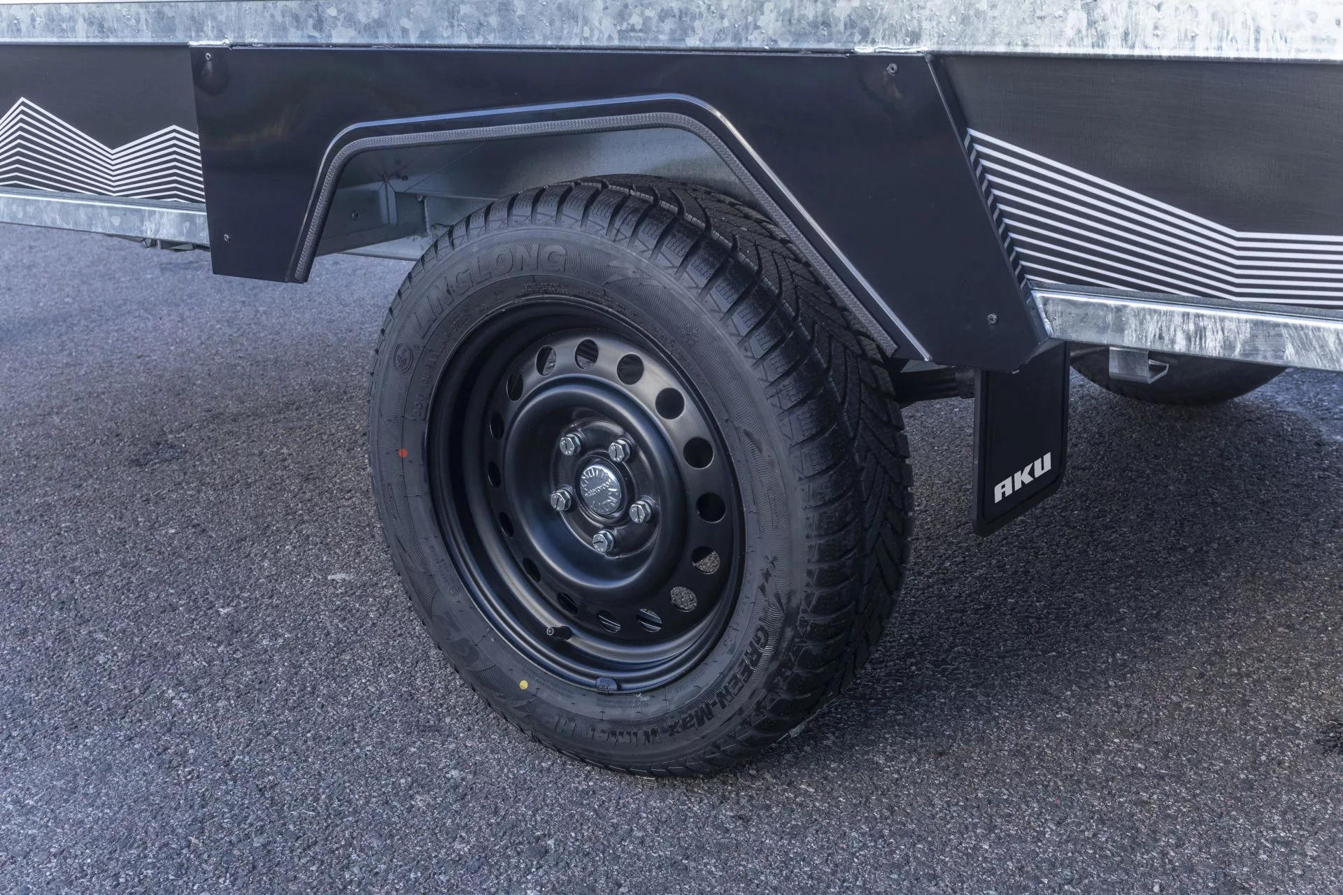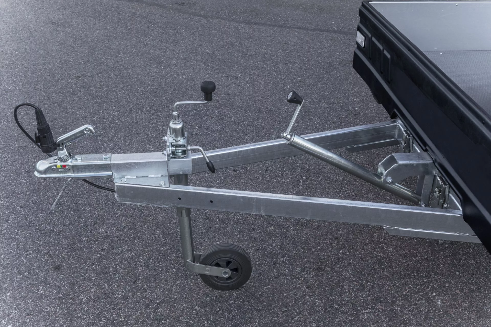 Iskunvaimentimilla varustettu lehtijousitus (Knott) vähentää kuoppien vaikutusta perävaunuun ja parantaa ajo-ominaisuuksia. Vedenpitävät navat (Knott) takaavat laakereiden pidemmän käyttöiän. Perävaunun sisällä oleva lokasuojan muovisuojus suojaa kelkkasuksia yli ajettaessa. Lava on varustettu sisäpuolella olevilla sidontalenkeillä kuorman kiinnittämiseksi, jotka on kiinnitetty perävaunun pohja- ja sivupalkkeihin. Kippaava lava ja täysin hitsattu takalaidan runko mahdollistavat perävaunun käytön moottoriajoneuvojen (kelkka, mönkijä, ajoleikkuri jne.) lastaamiseen ja purkamiseen.