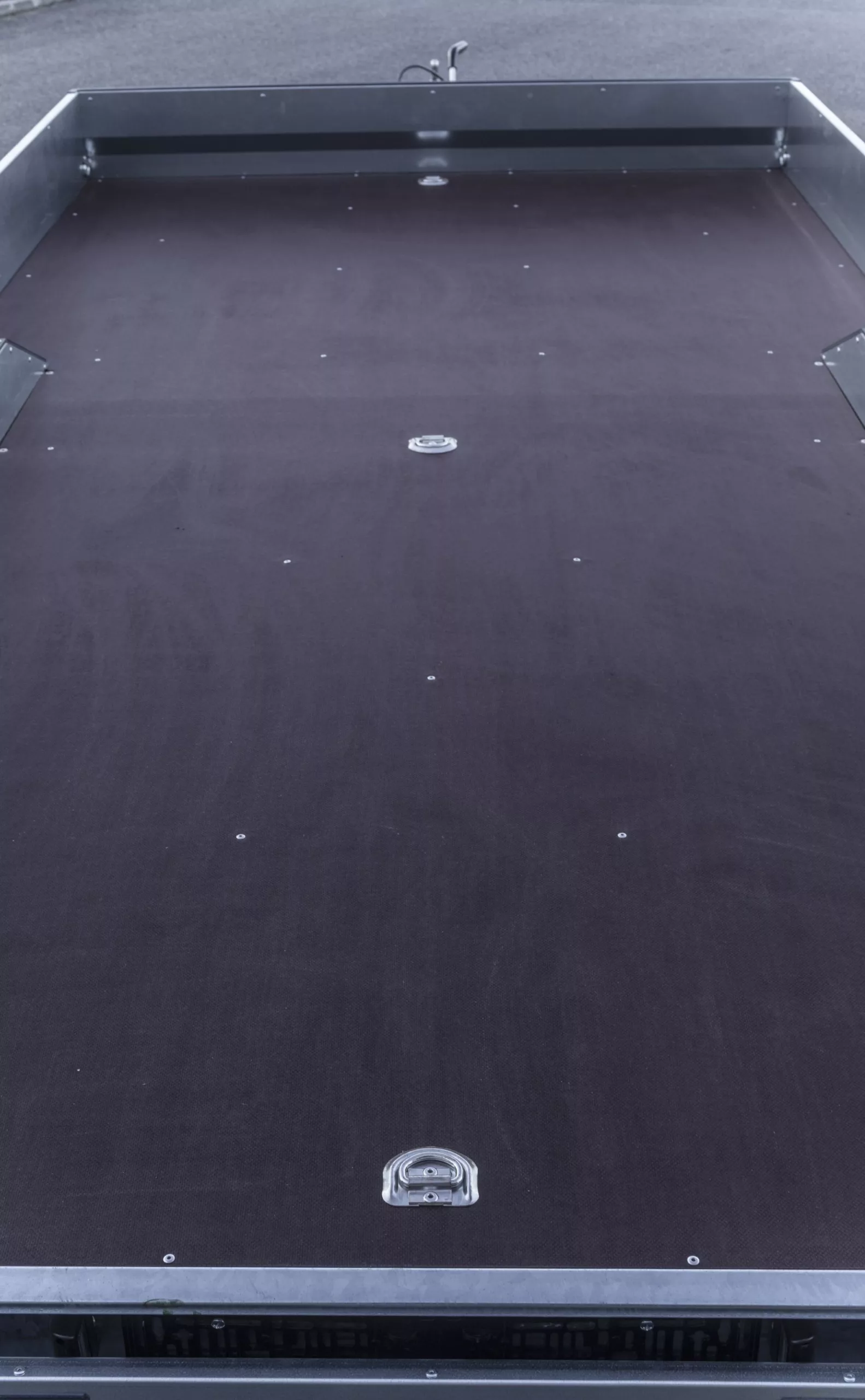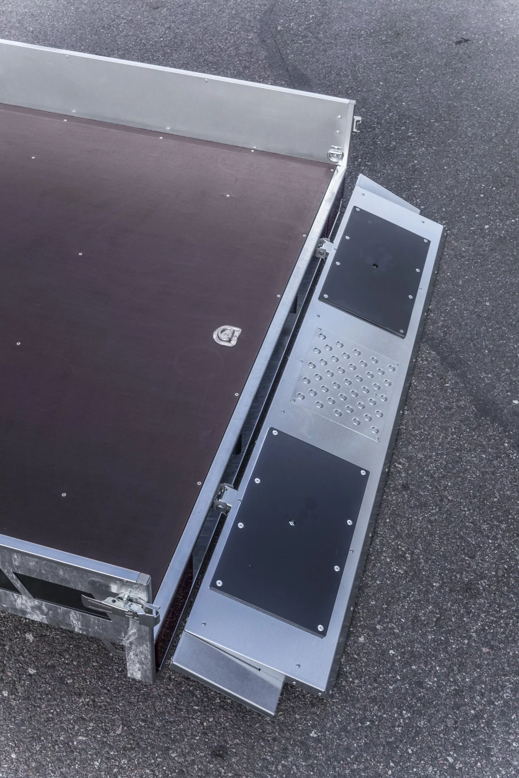 Iskunvaimentimilla varustettu lehtijousitus (Knott) vähentää kuoppien vaikutusta perävaunuun ja parantaa ajo-ominaisuuksia. Vedenpitävät navat (Knott) takaavat laakereiden pidemmän käyttöiän. Perävaunun sisällä oleva lokasuojan muovisuojus suojaa kelkkasuksia yli ajettaessa. Lava on varustettu sisäpuolella olevilla sidontalenkeillä kuorman kiinnittämiseksi, jotka on kiinnitetty perävaunun pohja- ja sivupalkkeihin. Kippaava lava ja täysin hitsattu takalaidan runko mahdollistavat perävaunun käytön moottoriajoneuvojen (kelkka, mönkijä, ajoleikkuri jne.) lastaamiseen ja purkamiseen.