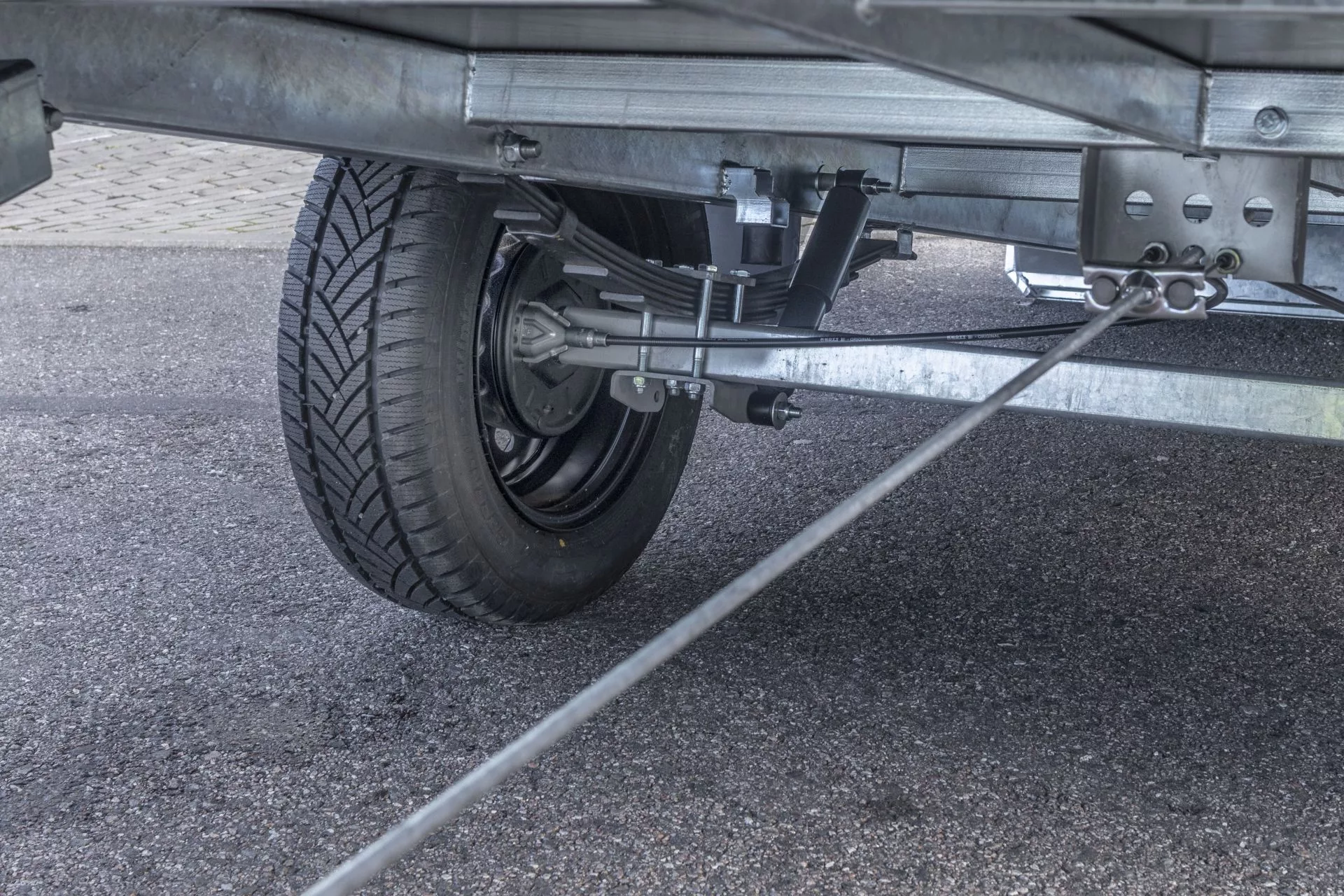 Iskunvaimentimilla varustettu lehtijousitus (Knott) vähentää kuoppien vaikutusta perävaunuun ja parantaa ajo-ominaisuuksia. Vedenpitävät navat (Knott) takaavat laakereiden pidemmän käyttöiän. Perävaunun sisällä oleva lokasuojan muovisuojus suojaa kelkkasuksia yli ajettaessa. Lava on varustettu sisäpuolella olevilla sidontalenkeillä kuorman kiinnittämiseksi, jotka on kiinnitetty perävaunun pohja- ja sivupalkkeihin. Kippaava lava ja täysin hitsattu takalaidan runko mahdollistavat perävaunun käytön moottoriajoneuvojen (kelkka, mönkijä, ajoleikkuri jne.) lastaamiseen ja purkamiseen.